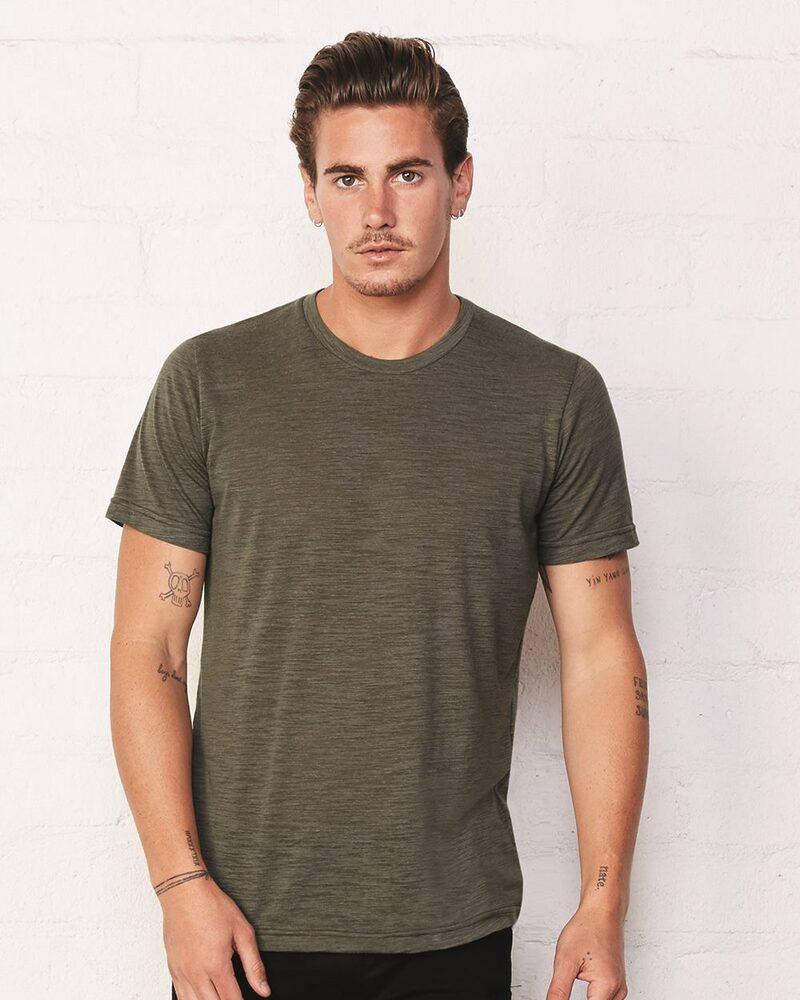 This unisex fitting essential tee from Bella+Canvas is everything you want in a classic t-shirt and more. Its unique composition includes 52% combed and ringspun cotton and 48% polyester with 40 singles for an irresistibly soft feel (Marble colours are 91% polyester, 9% cotton, 30 singles; Speckled colours are 50% polyester, 25% cotton, 25% rayon, 30 singles; Acid Wash and Mineral Wash are 52% cotton, 48% polyester, 30 singles). Wear it to the gym, to work, to school, or around the house! Other details you’ll enjoy include side seams and superior screen printing quality. This model comes in 33 solid, marble, neon, speckled, acid wash, slub, and mineral wash shades. Due to the unique Mineral and Acid Wash process, colour will vary from garment to garment. Available in sizes XS to 2XL at a price your wallet will enjoy.
